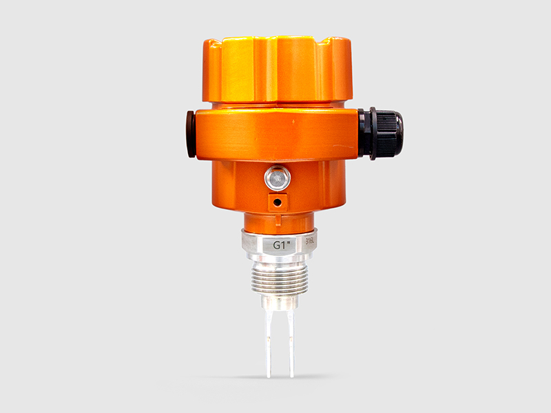 利用壓電晶體以及音叉的固有頻率對音叉棒進(jìn)行驅(qū)動以及信號反饋,使音叉棒產(chǎn)生共振,當(dāng)有料位接觸音叉棒時,使音叉棒反饋回來的頻率訊號,當(dāng)電路偵測到此一訊號的頻率降低時轉(zhuǎn)換成一個接點(diǎn)訊號的輸出。被測物包覆于音叉棒時所產(chǎn)生的阻尼作用而使音叉棒振動頻率降低,并且輸出一開關(guān)信號,因此內(nèi)部并無信號放大電路,可免除因物料性質(zhì)改變而必須時常調(diào)整靈敏度的困擾。當(dāng)音叉開關(guān)用于低報警(或低位控制)用途時,容器內(nèi)介質(zhì)向下排放流經(jīng)音叉,當(dāng)?shù)陀谝舨嫣囟ㄎ恢脮r,引起固有頻率的變化,這一變化被電子元件檢測,從而切換輸出狀態(tài);當(dāng)用于高位報警(或高位控制)用途時,容器內(nèi)的介質(zhì)上升并與音叉叉體接觸,引起固有頻率變化,切換至輸出狀態(tài)。